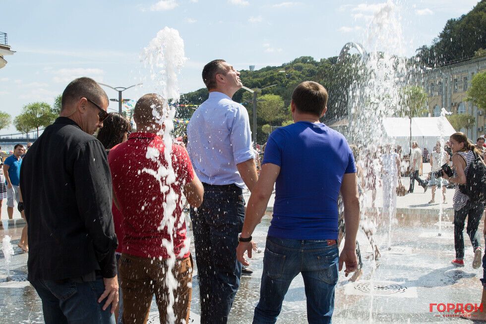 Открытие Почтовой площади в Киеве: Кличко купается в фонтане и дирижирует оркестром. Фоторепортаж