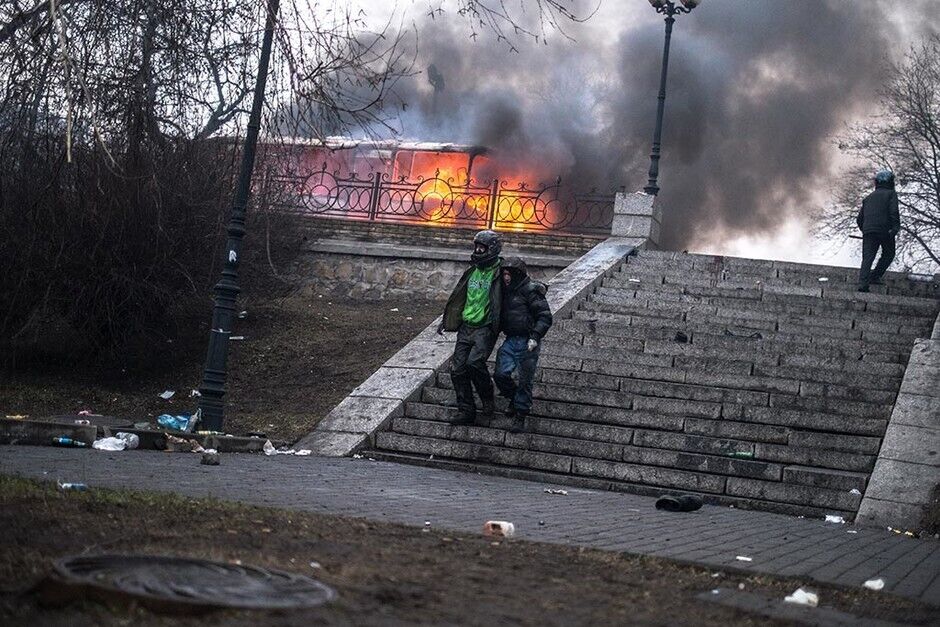 Известный фотограф такими словами описал то, что засвидетельствовала его камера: "От спокойствия в Киеве не осталось и следа. Обстановка – как в городе, где идет война. Люди движутся сотнями. Они оказываются на открытой местности, без защиты. Падают первые раненые... Выстрелы становятся жестокими, прицельными. С вершины лестницы открывается величественное и жуткое зрелище. Человеческое море движется, и это – движение истории. Народ ведет битву за свободу. На моих глазах разворачивается революция..."