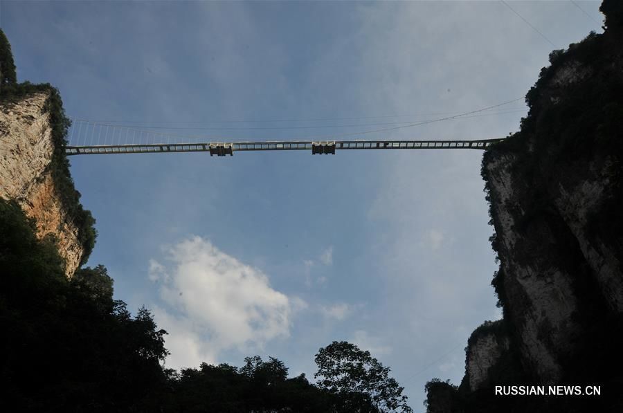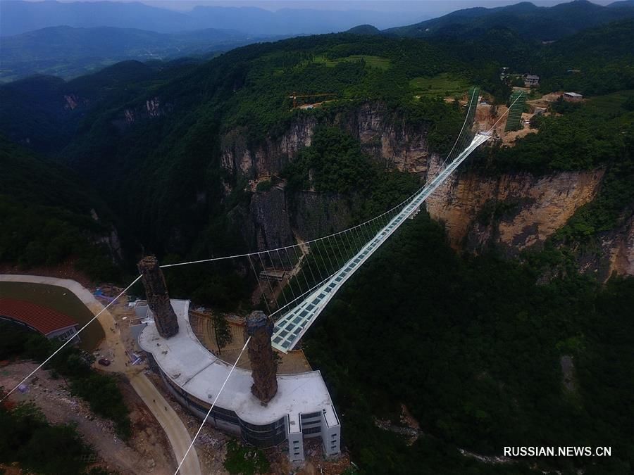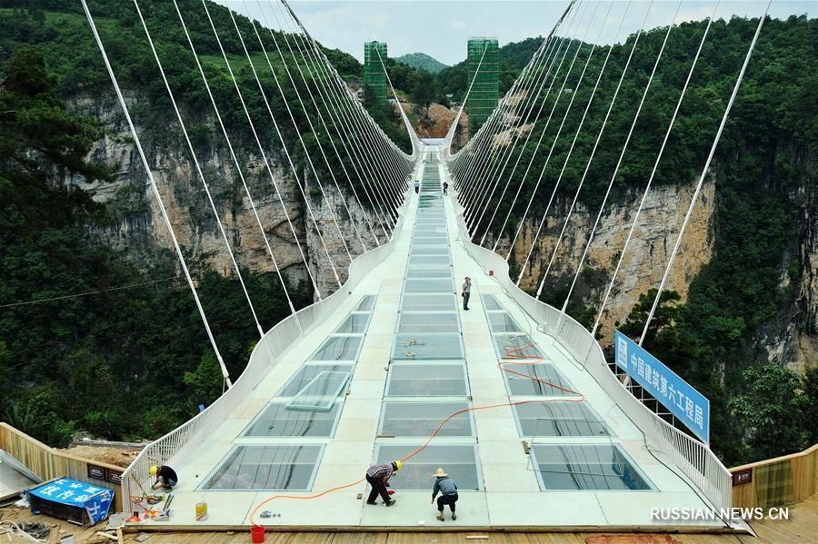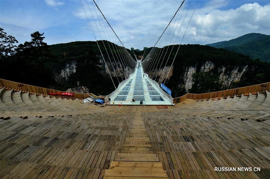 В провинции Хунань готовится к открытию стеклянный мост через ущелье Чжанцзяцзе.