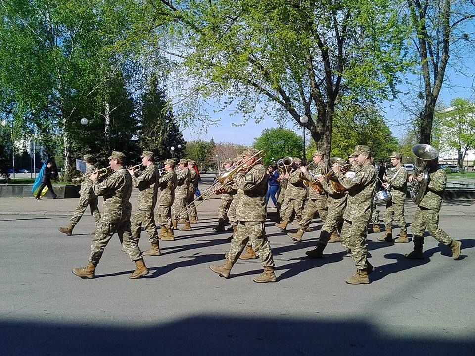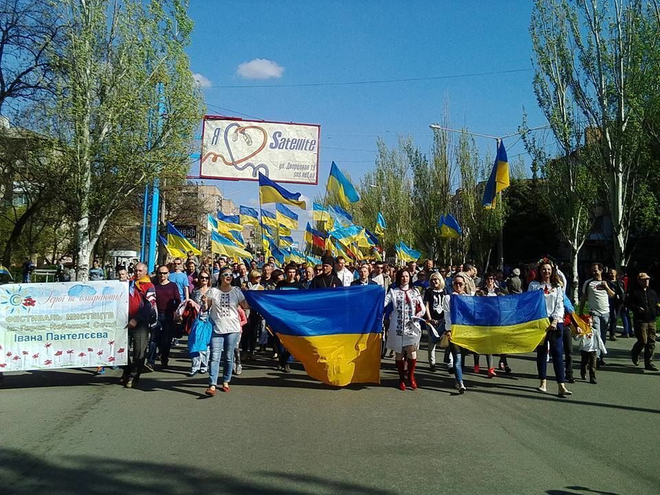 17 апреля в Краматорске состоялся патриотический марш, в котором поучаствовало около тысячи человек, сообщает Донецкая облгосадминистрация. Люди прошли по центральным улицам города, держа в руках украинские флаги и скандируя патриотические лозунги, после чего на площади Мира (бывшая площадь Ленина) перед ними выступил духовой оркестр Харьковского университета воздушных сил и киевская рок-группа "Тінь сонця". Акция была приурочена ко второй годовщине марша "Краматорск – это Украина", который состоялся в 2014 году, когда город был занят боевиками "ДНР".