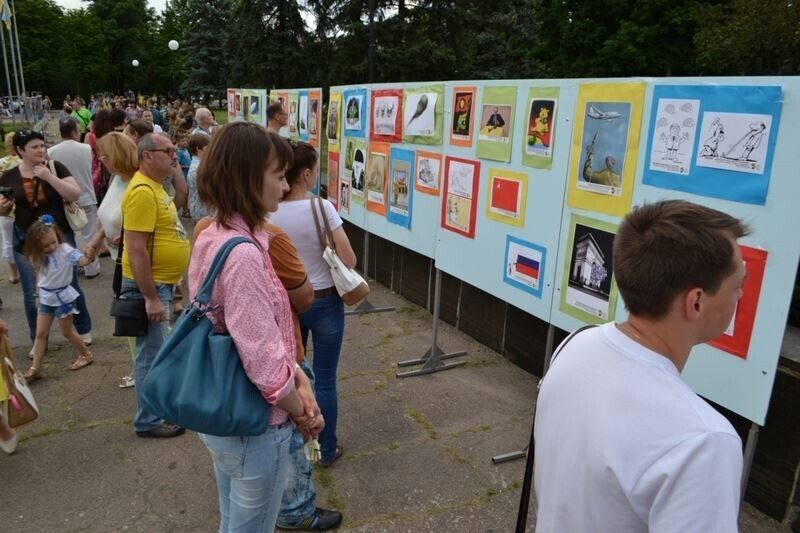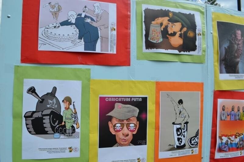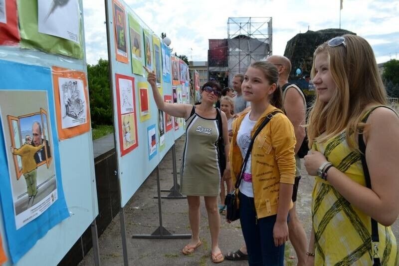 На центральной площади города Краматорск Донецкой области состоялась выставка "Тоталитаризм. Карикатуры и шаржи", в экспозиции которой были представлены 70 работ художников-карикатуристов из 38 стран мира. Об этом сообщает пресс-центр АТО. Героями подавляющего большинства карикатур и шаржей стал президент РФ Владимир Путин, нередко в соседстве с Гитлером и Сталиным. Также были работы, посвященные пропагадистам Владимиру Соловьеву и Дмитрию Киселеву, и главе российского МИДа Сергею Лаврову.