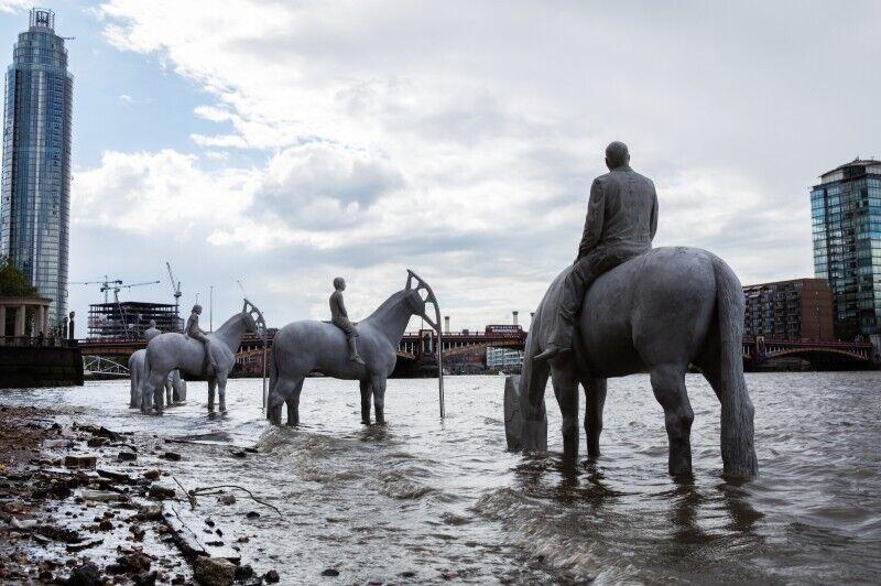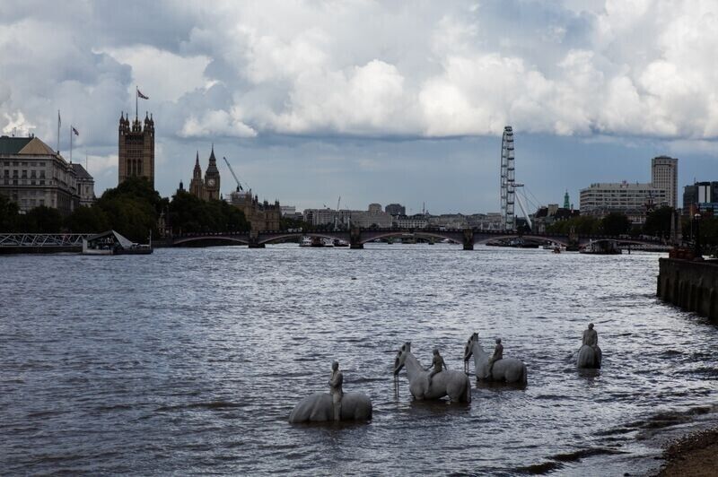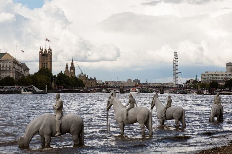 Британский художник и скульптор Джейсон Тейлор установил на дне Темзы инсталляцию – "всадники промышленного апокалипсиса". Дважды в день, во время отлива, скульптуры появляются перед горожанами, пишет The Creator Project. По словам Тейлора, через свою работу он призывает людей задуматься о климатических изменениях, вызванных деятельностью человека, и о том, куда нас ведет современная цивилизация.
