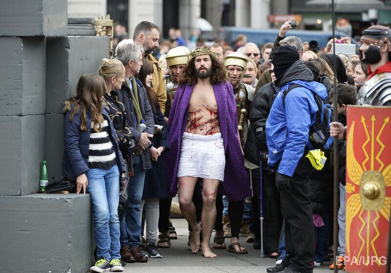 В Лондоне воссоздали сцену распятия Иисуса Христа. Фоторепортаж
