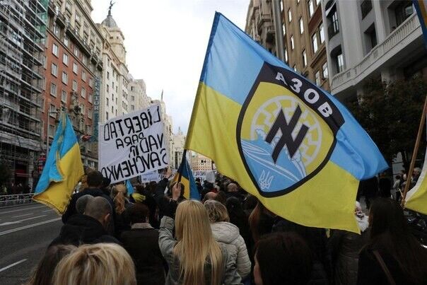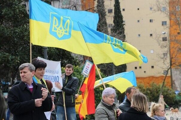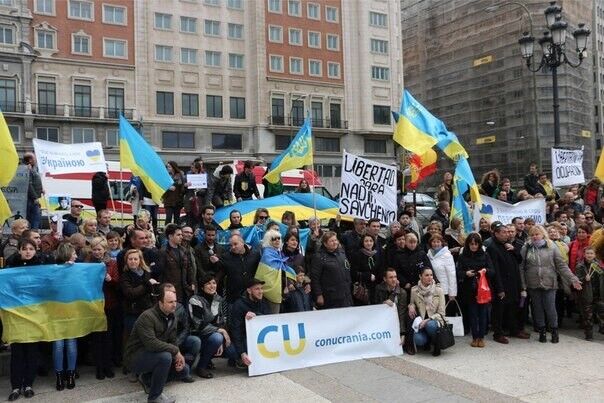 В воскресенье, 22 марта, в столице Испании Мадриде более 100 человек приняли участие в манифестации и шествии в поддержку Украины. Как сообщает "Вконтакте" пресс-служба полка "Азов", люди пришли на мероприятие с национальными флагами Украины, а также с флагами "Азова". Участники акции держали плакаты на украинском, русском и испанском языках с надписями: "Нет войне!","Серце кожного з нас з Україною", "Свободу Украине от российских оккупантов", "STOP terrorusia". Активисты скандировали: "Герои не умирают, умирают враги!", "Слава нации, смерть врагам", "Свобода Украине", "Путин – убийца", " Сегодня Украина – завтра вся Европа".