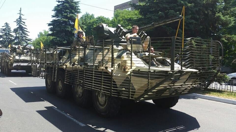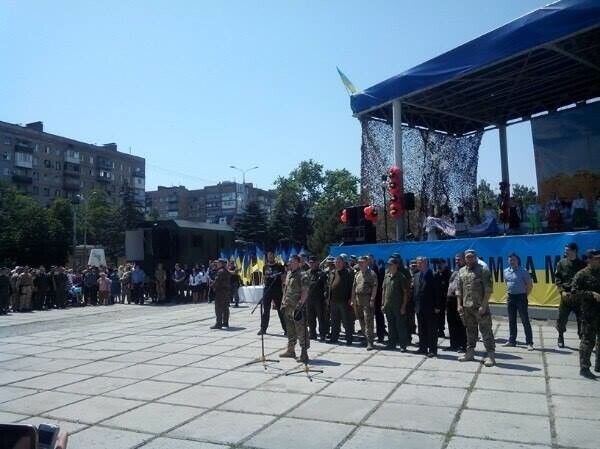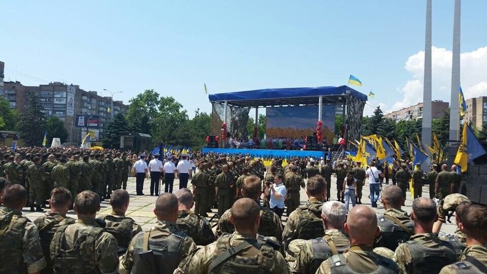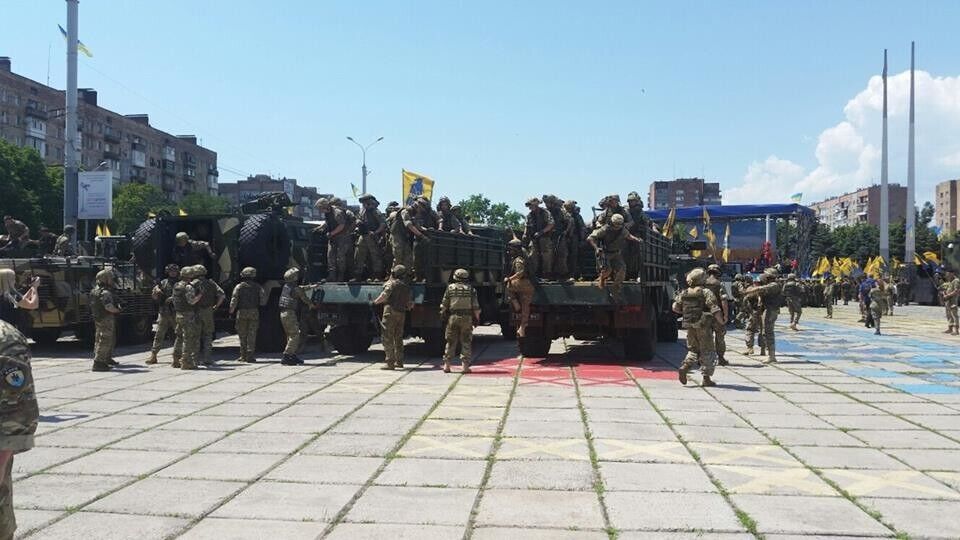 В Мариуполе Донецкой области отмечают годовщину освобождения города от пророссийских террористов. На площади у перекрестка проспектов Ленина и Строителей оборудована сцена в цветах национального флага. Также украинскими флагами украшена вся площадь. Перед жителями города выступает командир полка "Азов" Андрей Билецкий. В 17.00 в городе начнется парад, посвященный годовщине операции по обезвреживанию вооруженного формирования "ДНР".