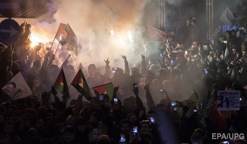 В Израиле празднуют, а в Палестине, Турции, Египте и других мусульманских странах прошли акции протеста в связи с тем, что президент США Дональд Трамп официально признал Иерусалим столицей Израиля. Израильские власти поприветствовали решение американского президента и назвали этот день "историческим". Президент Палестины Махмуд Аббас назвал Иерусалим "вечной столицей Государства Палестина". Агентство ЕРА опубликовало кадры, как в мире отреагировали на решение Трампа.