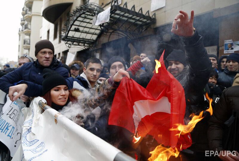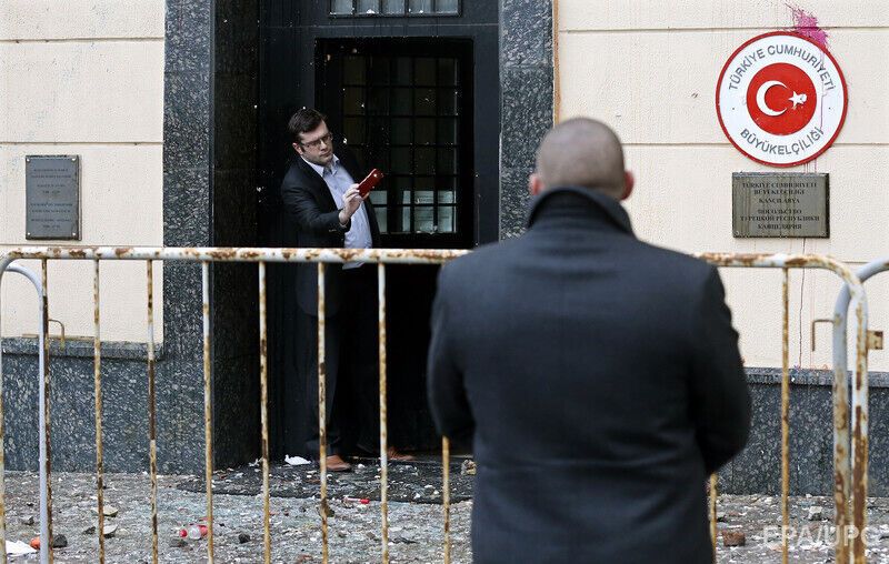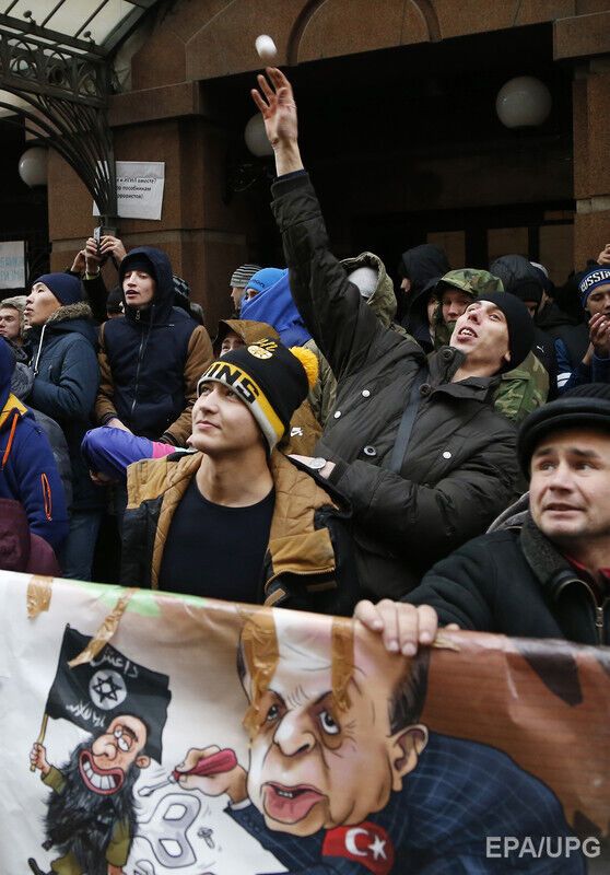 Сегодня в Москве протестующие забросали посольство Турции яйцами и камнями и сожгли турецкий флаг. В результате нападения территория вокруг посольства была заполнена мусором, а в самом здании выбиты несколько окон. Акция возле дипломатического представительства прошла на второй день после того, как турецкие военно-воздушные силы уничтожили российский бомбардировщик вблизи своей границы. В результате погибли пилот Су-24 и морской пехотинец, который участвовал в спасательной операции на месте крушения бомбардировщика.