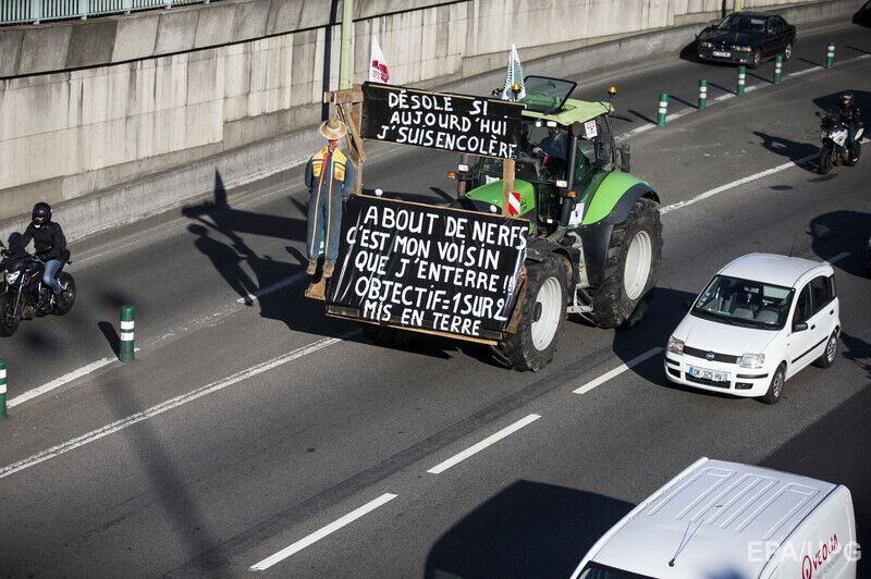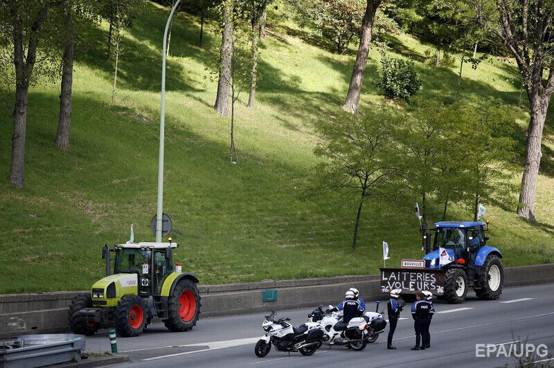 В Париже фермеры на тракторах устроили акцию протеста против снижения цен на продукты. Фоторепортаж