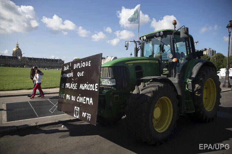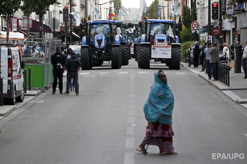 В среду, 3 сентября, фермеры со всей Франции съехались на тракторах в Париж на акцию протеста против снижения закупочных цен на продукты питания. Как сообщает французское издание The Local, всего в протесте участвовали до 1700 тракторов "вместе с тысячами разъяренных фермеров". Из-за акции в Париже наблюдаются небольшие пробки, многие жители города прислушались к советам полиции и используют общественный, а не личный транспорт. В падении цен на сельхозпродукцию французские фермеры обвиняют дешевый импорт, российские санкции, также супермаркеты и дистрибьюторов.
