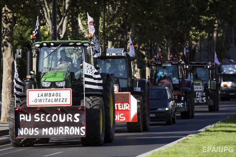 Это не первая акция протеста фермеров во Франции. В конце июля несколько сотен тракторов перегородили дороги, ведущие из Германии и Франции, и задержали около 400 грузовиков с продуктами из этих стран.