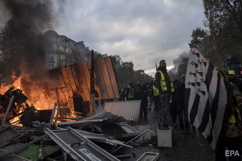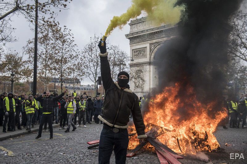 В Париже произошли столкновения полиции с протестующими против повышения цен на бензин. Фоторепортаж