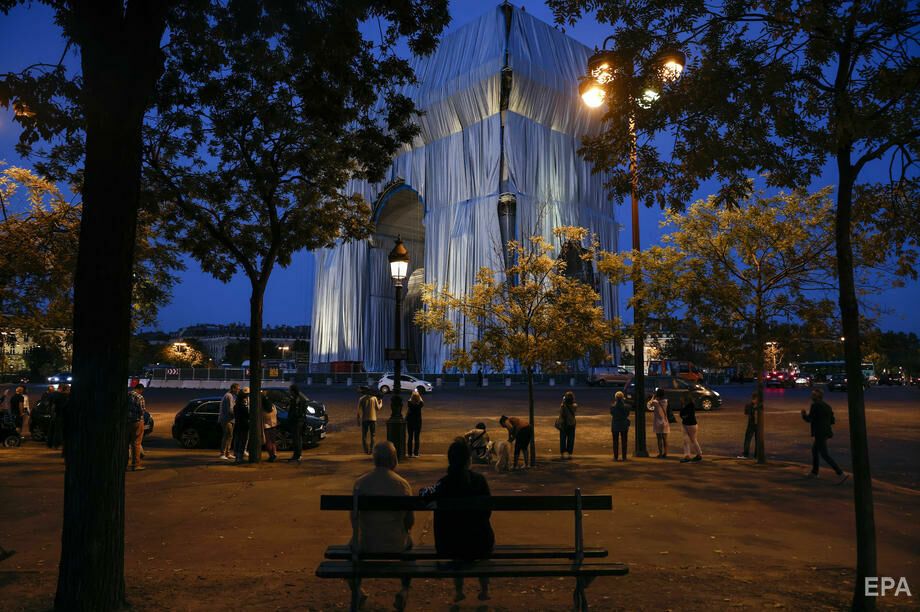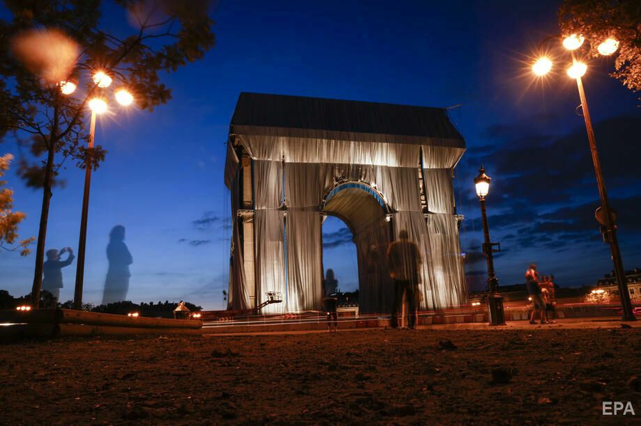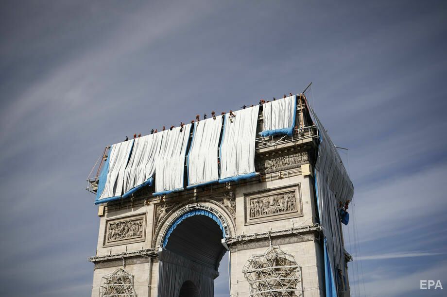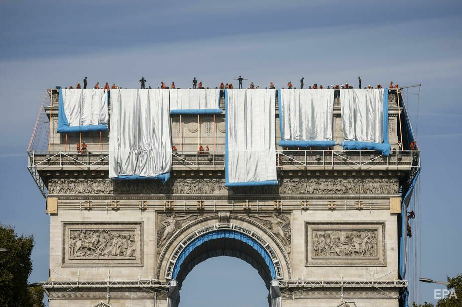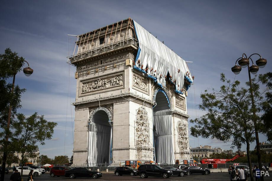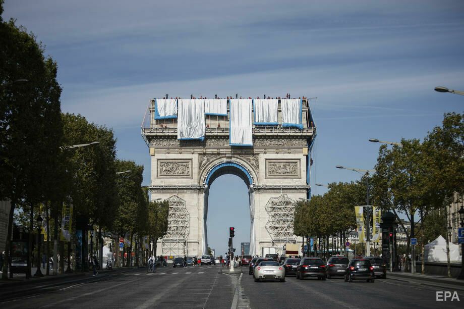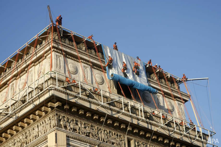 В Париже Триумфальную арку обтянули тканью в дань памяти художнику, проект обошелся в €14 млн. Фоторепортаж