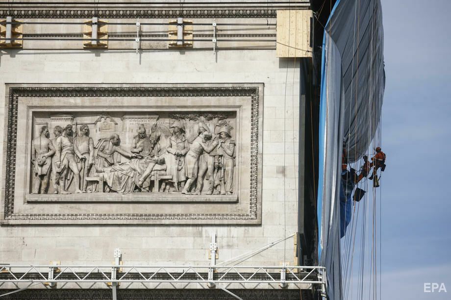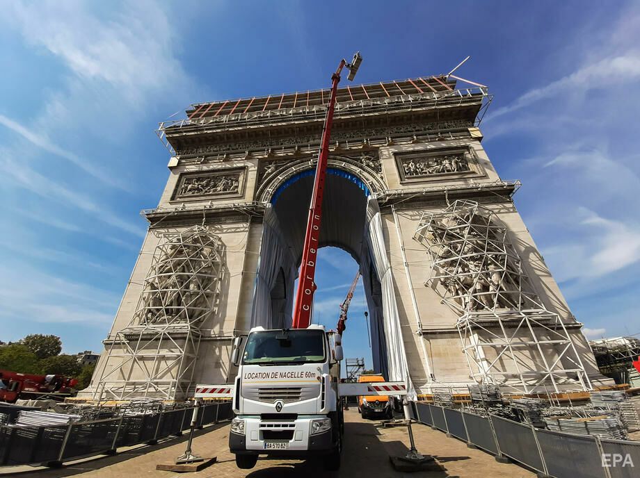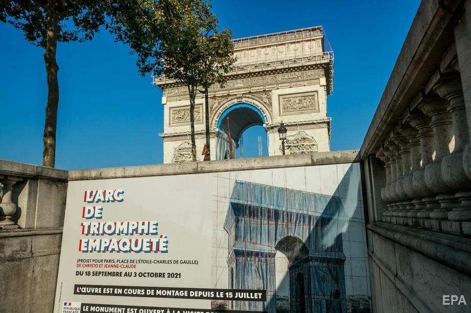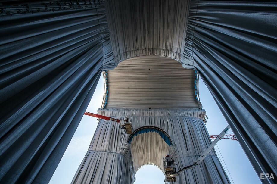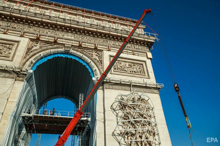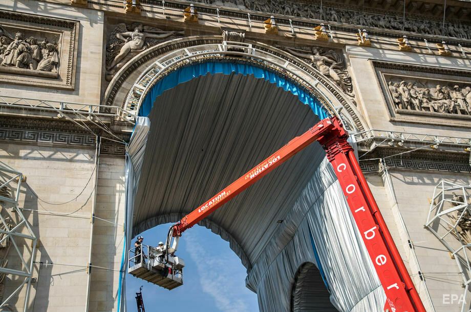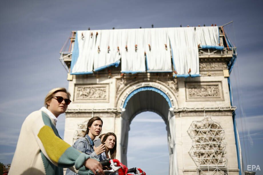 В Париже Триумфальную арку обтянули тканью в дань памяти художнику, проект обошелся в €14 млн. Фоторепортаж