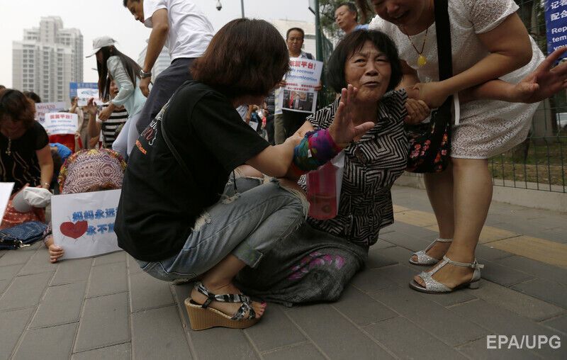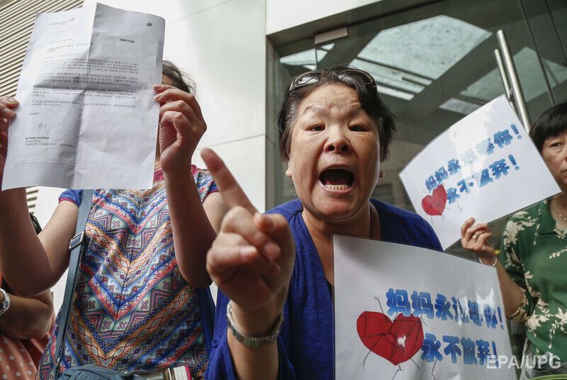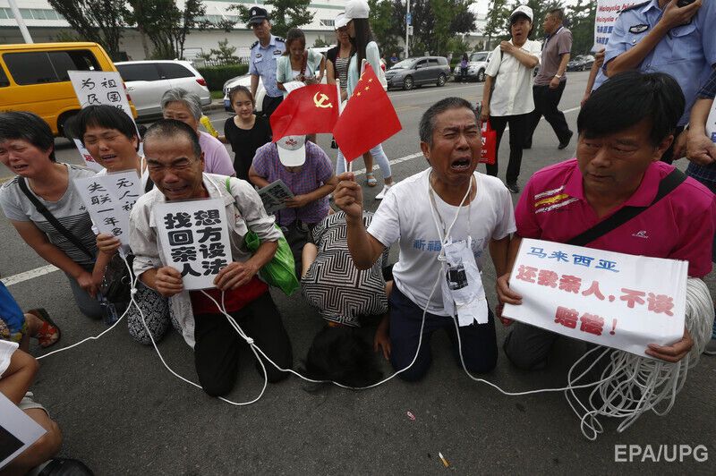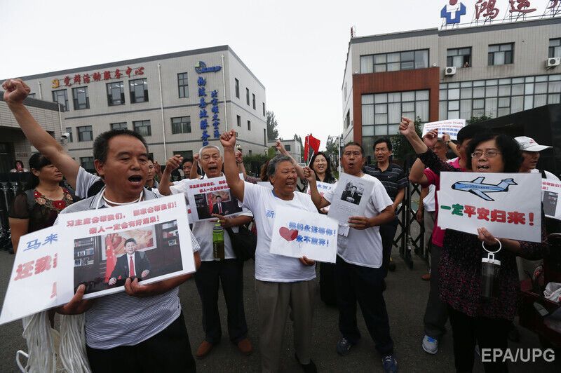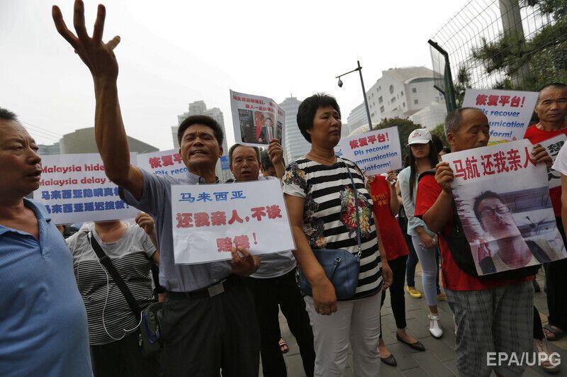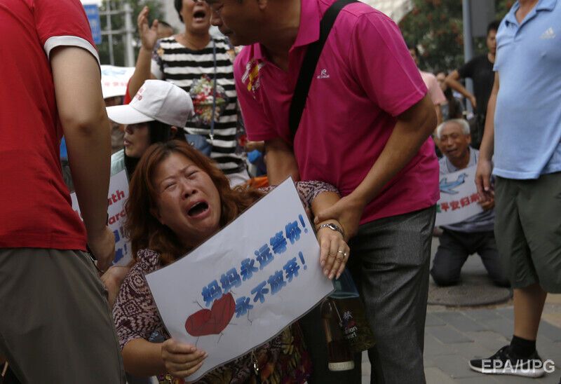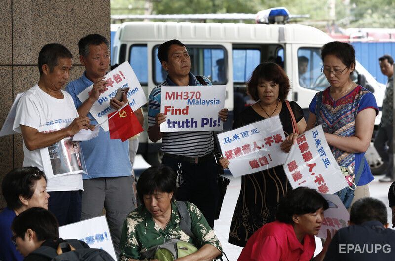 В пятницу, 7 августа, в Пекине родственники пассажиров исчезнувшего самолета авиакомпании Malaysia Airlines пикетировали посольство Малайзии в Китае, выражая недовольство противоречиями в сообщениях о ходе расследования крушения рейса MH370. Днем ранее они организовали акцию у стен пекинской штаб-квартиры авиакомпании. Они держали в руках плакаты с надписями "Испробуйте все средства, чтобы найти и вернуть любимых", "Мать всегда ждет вас! Никогда не сдавайтесь", "Президент Си поможет нам, страна поможет нам!" и др. Как отмечает The Guardian, митингующих было около 30 человек. Они требовали доставить их на французский остров Реюньон в Индийском океане, где, как утверждают малайзийские власти, были найдены обломки рейса MH370, исчезнувшего с радаров 8 марта 2014. На борту самолета находились 239 человек, включая двоих граждан Украины. Большинство погибших были китайцами. Родственники заявили, что на острове они хотят увидеть все своими глазами, и обвинили китайские власти в сокрытии правды о катастрофе.