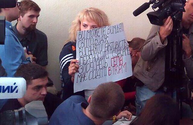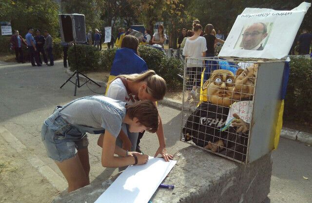 В пикете перед судом в Полтаве, где слушается дело Кернеса, принимали участие школьники. Фоторепортаж