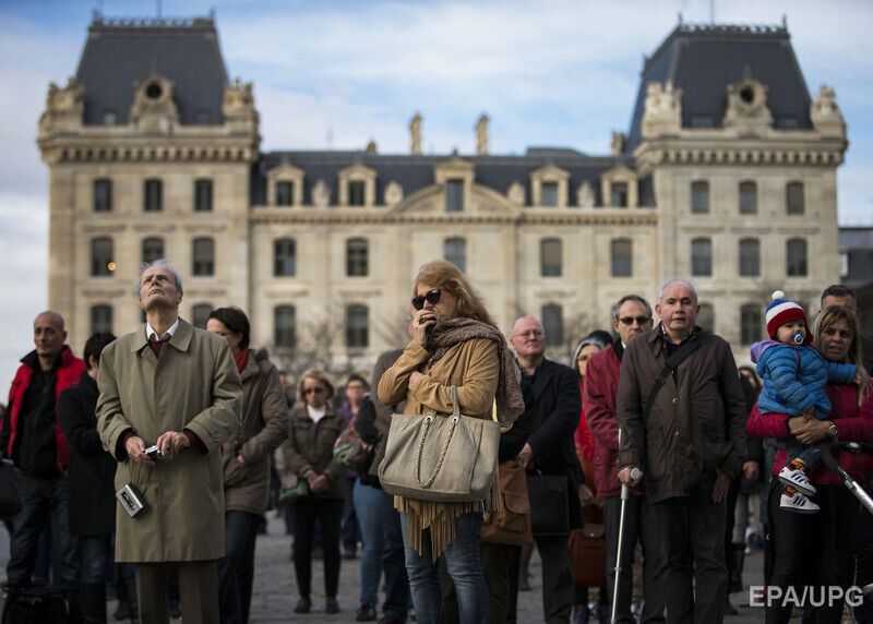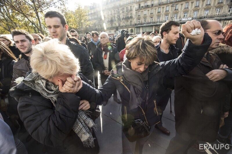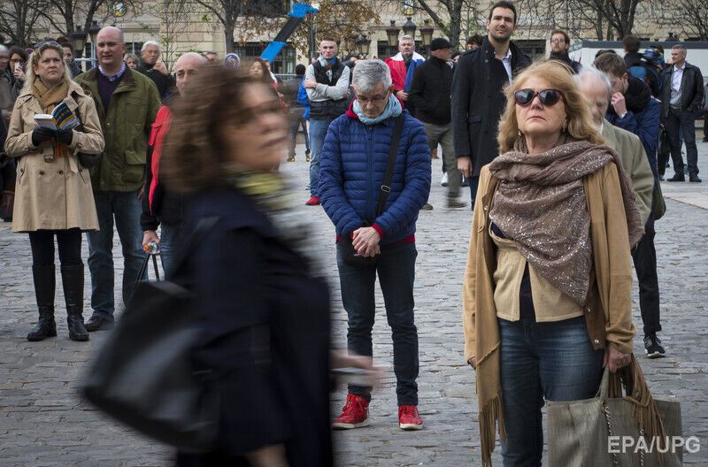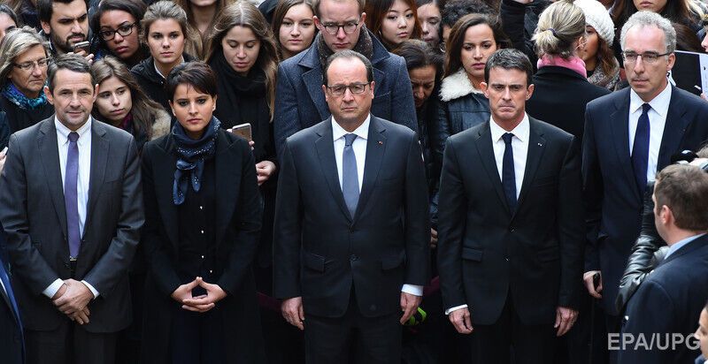 Десятки тысяч людей в 12.00 по среднеевропейскому времени (13.00 по Киеву) приняли участие в траурной акции поминовения погибших в ходе террористических атак в Париже, во всей Европе была объявлена минута молчания. В Париже люди пришли к местам, где погибли люди, а также собрались на площади Республики и у собора Парижской Богоматери, сообщило агентство EPA. Президент Франции Франсуа Олланд принял принял участие в траурной акции, находясь в университете Сорбонна.