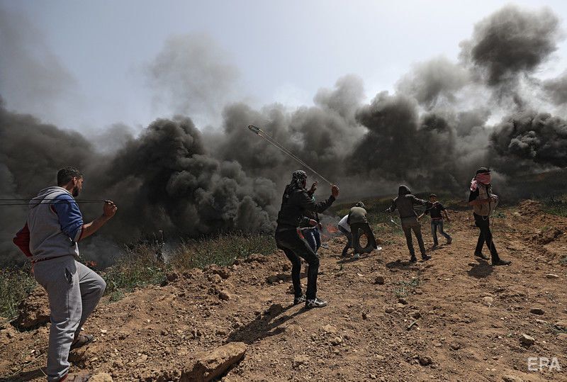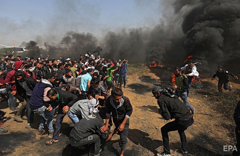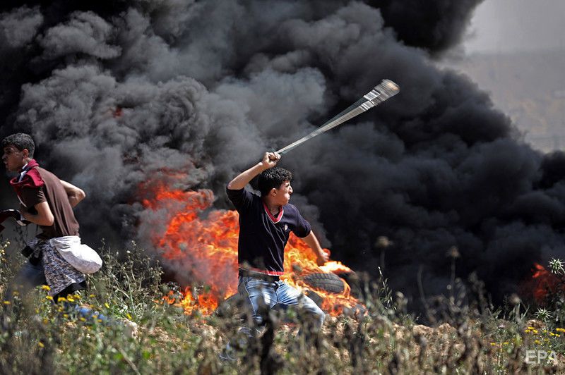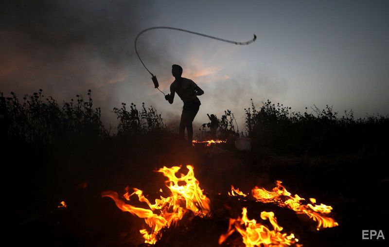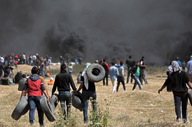Сегодня утром на границе сектора Газа возобновились активные действия палестинцев – участников "Марша возвращения". Фото обнародованы агентством ЕРА. По данным израильской стороны, в акции приняли участие несколько тысяч палестинцев, которые жгли покрышки и бросали в сторону военнослужащих бутылки с зажигательной смесью и петарды. Об этом сообщает издание NEWSru.co.il. По данным пресс-службы армии Израиля ЦАХАЛ, у пограничного забора с сектором Газа зафиксированы пять основных очагов акций протеста. Активисты пытались повредить и поджечь забор безопасности. Военные Израиля заявили, что пресекли несколько попыток нападения. Издание пишет, что у протестантов был флаг палестинского сопротивления, дополненный свастикой. "Палестинский информационный центр" сообщил, что по данным министерства здравоохранения сектора Газа, во время сегодняшней акции уже погибли семь человек.