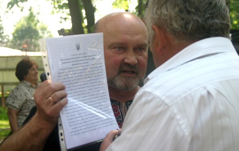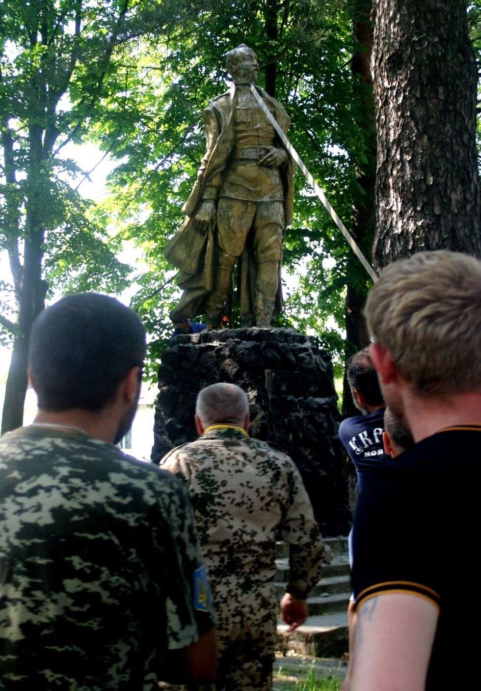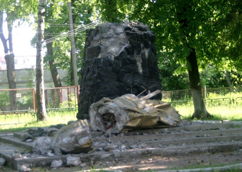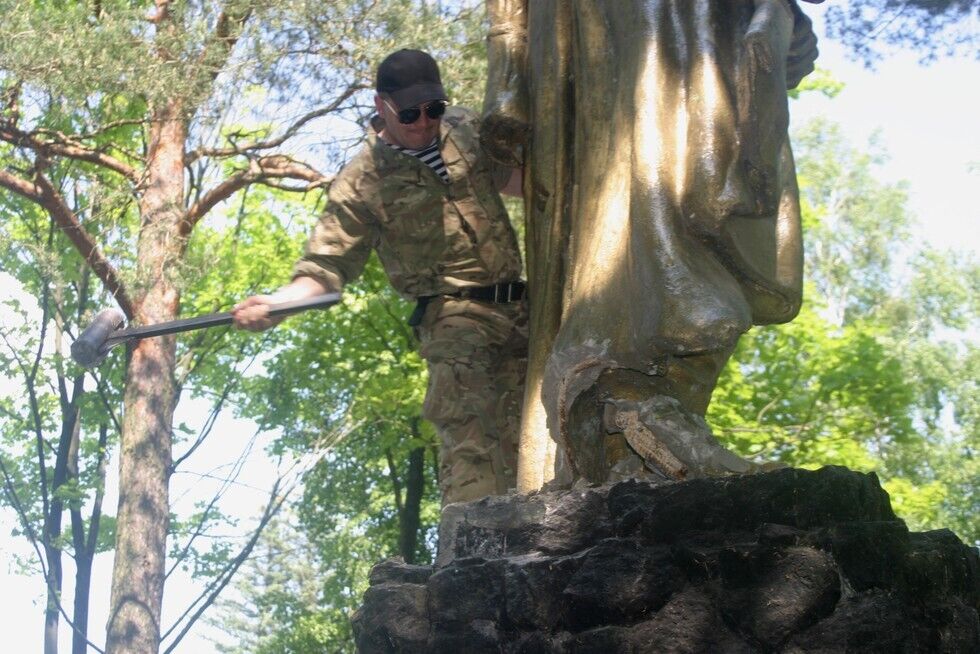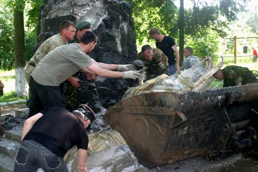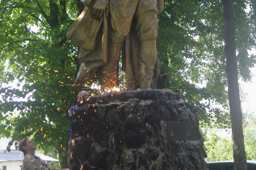 В селе Екатериновка Сарненского района Ровенской области в среду, 3 июня, активисты "Правого сектора" и бойцы 10-го запасного батальона Добровольческого украинского корпуса (ДУК) "ПС" вместе с представителями общины села снесли памятник коммунистическому деятелю, основателю НКВД Феликсу Дзержинскому. Активисты забросили на шею памятника петлю, отбили бетонные ноги кувалдой и подрезали автогеном металлические опоры.