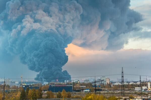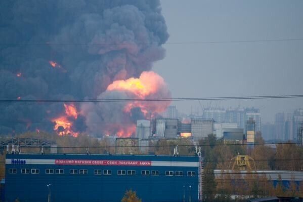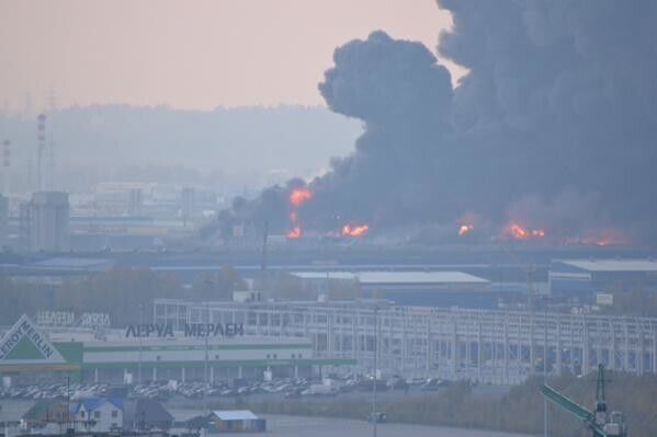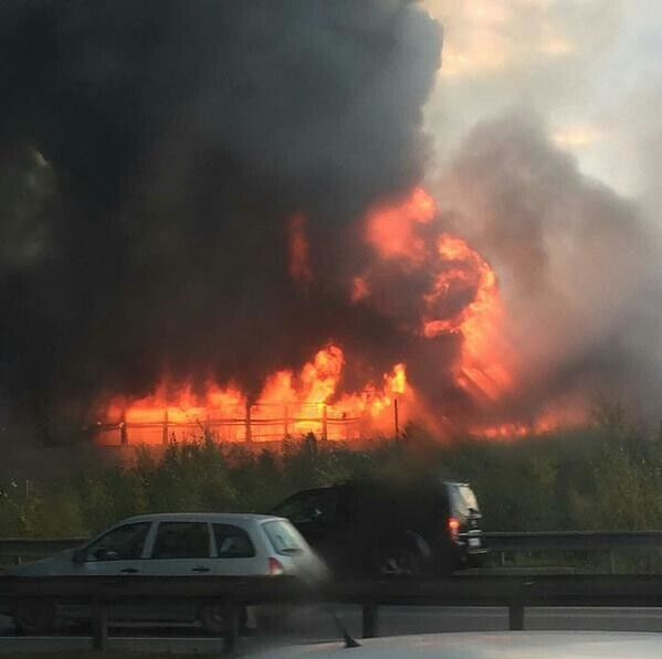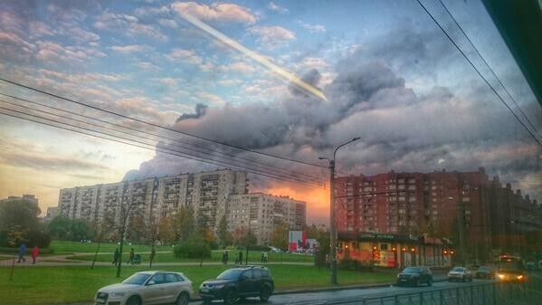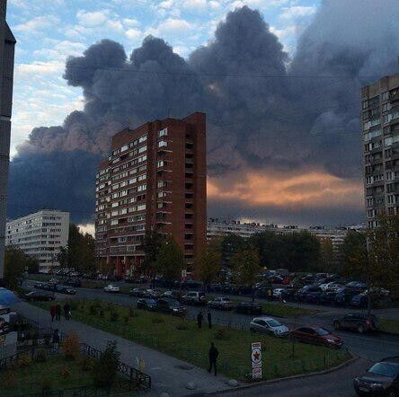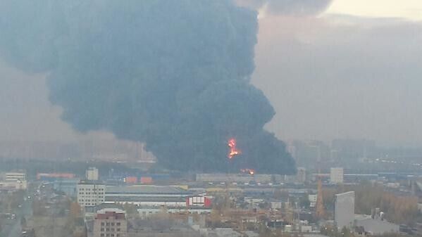 В Санкт-Петербурге спасатели 15 часов борются с огнем на складе. Фоторепортаж