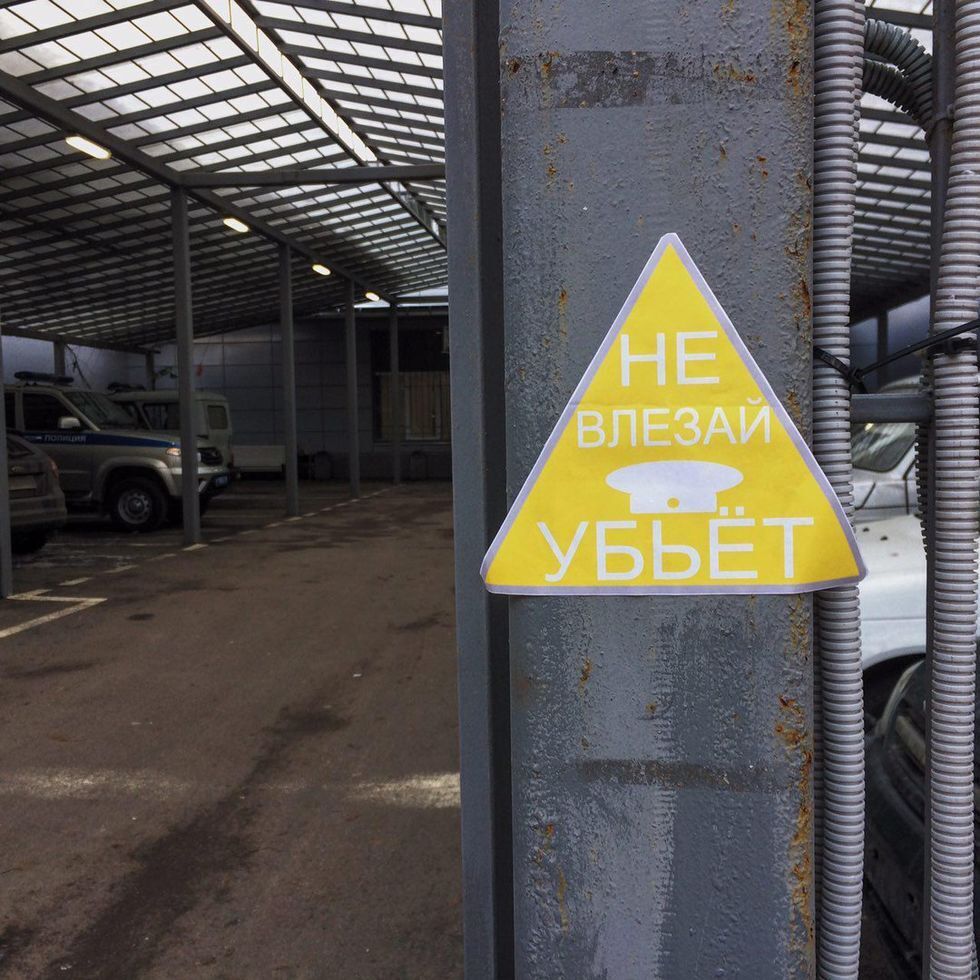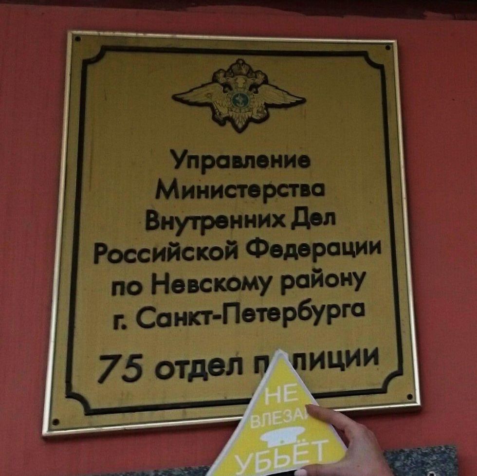 В Санкт-Петербурге возле полицейских участков расклеили знаки "Не влезай, убьет". Фоторепортаж