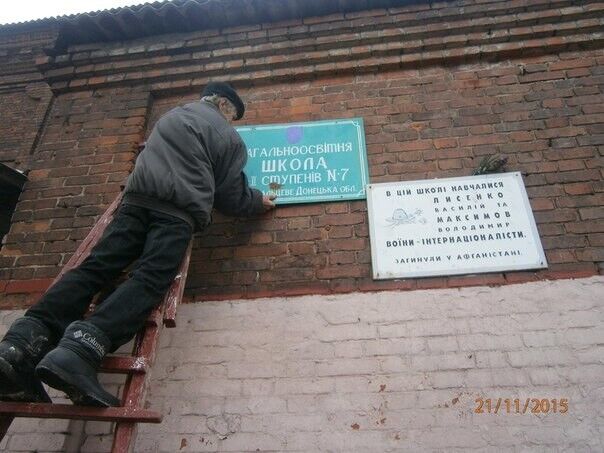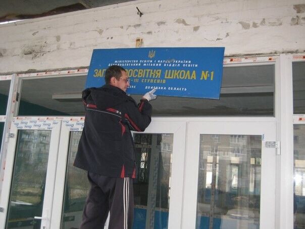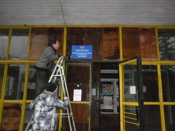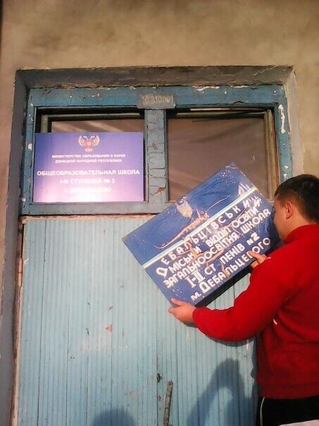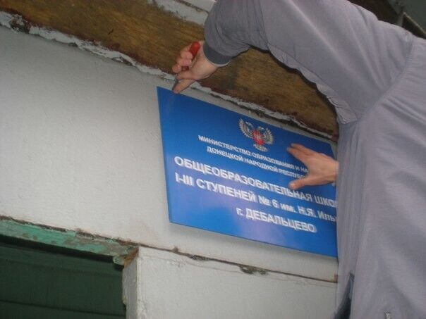 В школах Дебальцево вместо ремонта украинские вывески поменяли на русские с двуглавым орлом. Фоторепортаж