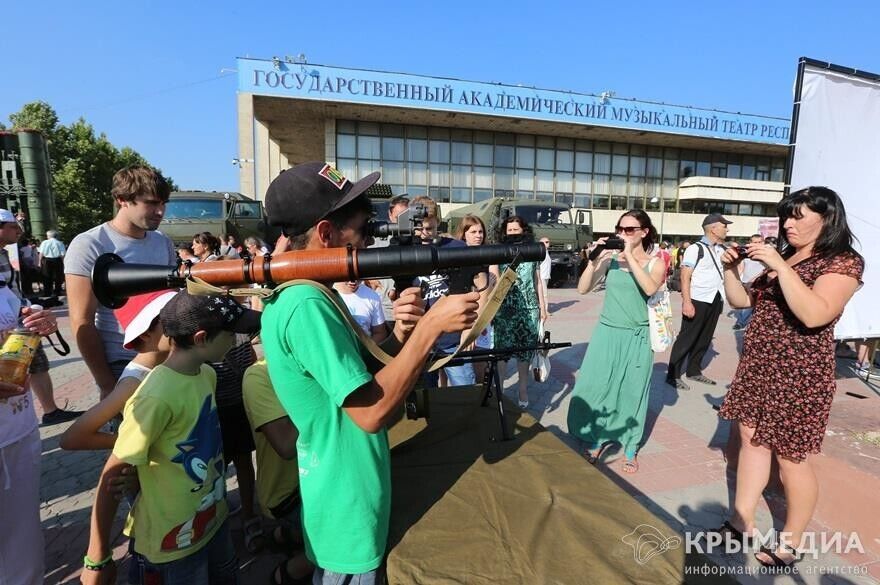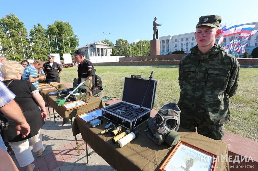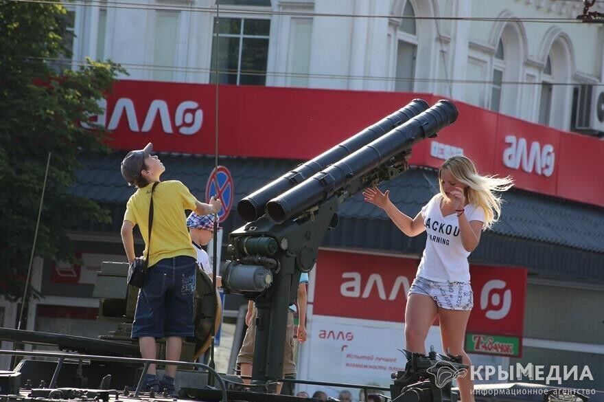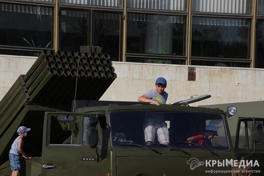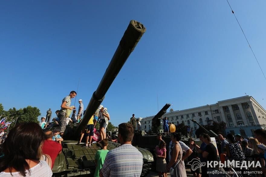 В Симферополе на площади Ленина 18 июля прошла агитационная акция "Служба по контракту на Черноморском флоте – твой выбор!". Об этом сообщает официальный сайт Симферопольского горсовета. В рамках акции жителям города были представлены реактивная система залпового огня "Град", пусковая установка ЗРК С-300, модификации БТР-80, танк Т-72, бронеавтомобиль "Тигр", минометы, стрелковое оружие, снаряжение морской авиации, водолазных и других подразделений Черноморского флота. Также демонстрировались видеоролики о военной службе по контракту. Кроме того, на территории площади был развернут мобильный пункт отбора на военную службу по контракту в вооруженные силы РФ.