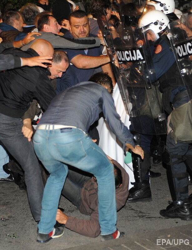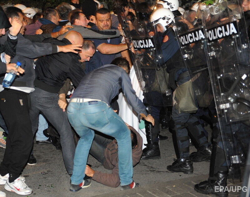 В центре столицы Черногории Подгорице в субботу, 17 октября, в ходе антиправительственного митинга произошли столкновения полиции и демонстрантов. Об этом сообщается на странице организаторов протеста в Facebook. Сообщается, что демонстранты, требовавшие отставки премьер-министра Мило Джукановича, пытались через полицейский кордон прорваться к зданию парламента, после чего полицейские применили слезоточивый газ и светошумовые гранаты.