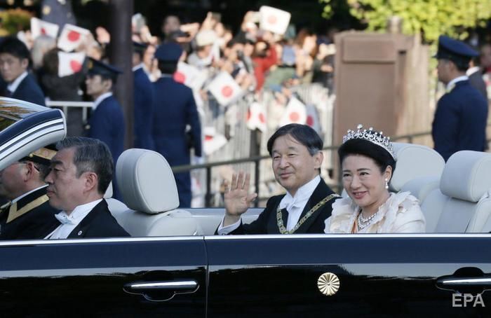 Японский император Нарухито и его жена императрица Масако приняли участие в параде в центре Токио 10 ноября. Об этом сообщает Kyodo News. За парадом наблюдало около 120 тыс. человек, многие держали в руках национальные флаги страны. Император и его супруга ехали на кабриолете. Также за ними на авто следовали наследный принц Фумихито – младший брат императора – и его жена, наследная принцесса Кико. Всего в колонне было 46 транспортных средств. Интронизация Нарухито состоялась 22 октября, но парад был перенесен из-за тайфуна "Хигибис", в результате которого погибло 80 человек.