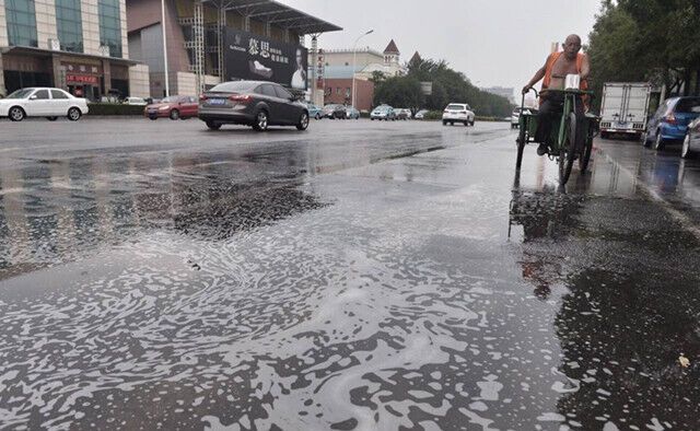 В Тяньцзине, где недавно прогремели взрывы, после дождя появилась необычная пена. Фоторепортаж