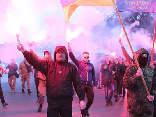 В Ужгороде участники шествия "Націоналістів Закарпаття" заявили, что "готовы к противодействию венгерским оккупантам". Фоторепортаж