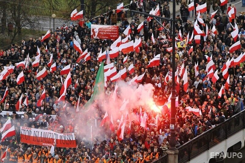 В Варшаве проходит традиционный марш по случаю Дня Независимости Польши. Как сообщает агентство ЕРА, лозунг шествия "Поляки для Польши, Польша – для поляков". Марш проходит от перекрестка Дмовского, через Иерусалимскую аллею к мосту Понятовского в непосредственной близости от Национального стадиона. По разным данным в марше принимает участие от 25 тыс. до 50 тыс. человек, сообщает Gazeta Wyborcza.