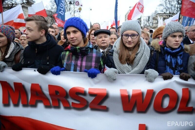 14 декабря в Варшаве состоялся марш сторонников правящей партии "Право и справедливость", сообщает Gazeta Wyborcza. Марш был приурочен к годовщине введения военного положения в Польше в 1981 году, основным лозунгом акции стала фраза "Выражаем поддержку правительству и президенту". По данным местных властей, в акции приняли участие 15 тыс. человек. В то же время, канал TVN24, ссылаясь на данные полиции, приводит цифру в 40-45 тыс. человек. Организаторы же говорят о 80 тыс. участников. Акция стала ответом на манифестацию "Комитета защиты демократии", которая прошла накануне, и в которой также приняли участие несколько десятков тысяч человек.
