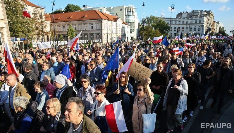 24 сентября в польской Варшаве тысячи граждан вышли на улицы с протестом против политики правительства национал-консервативной партии "Право и справедливость" (ПиС), передает Deutsche Welle. По данным полиции, в митинге принимали участие 12 тысяч человек, в то время как местные власти заявили о 30 тысячах участников. Протестующие раскритиковали правительство, которое, как утверждают оппозиционеры, раскалывает и изолирует Польшу. Также участники митинга выступили против возможного принятия парламентом еще более жесткого закона в отношении абортов и планируемой школьной реформы. Митинг организовал "Комитет защиты демократии" (КЗД). После прихода к власти консерваторов он регулярно устраивает акции против действующего правительства.