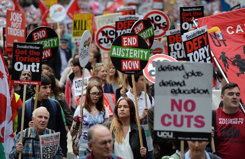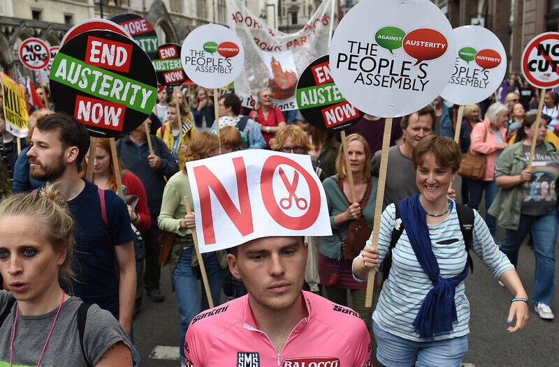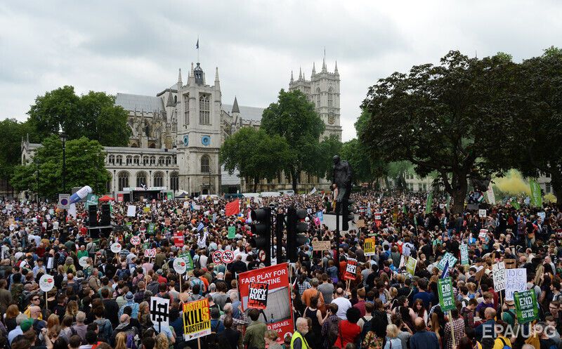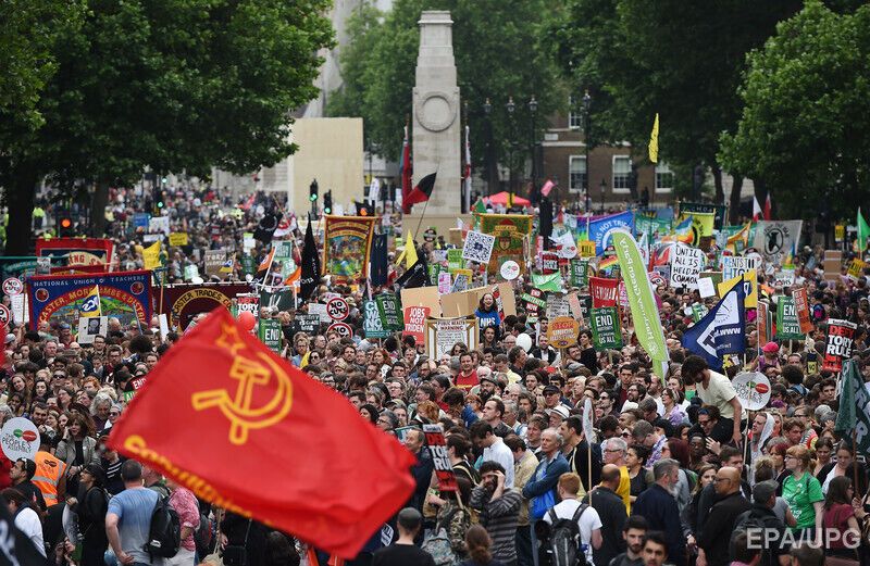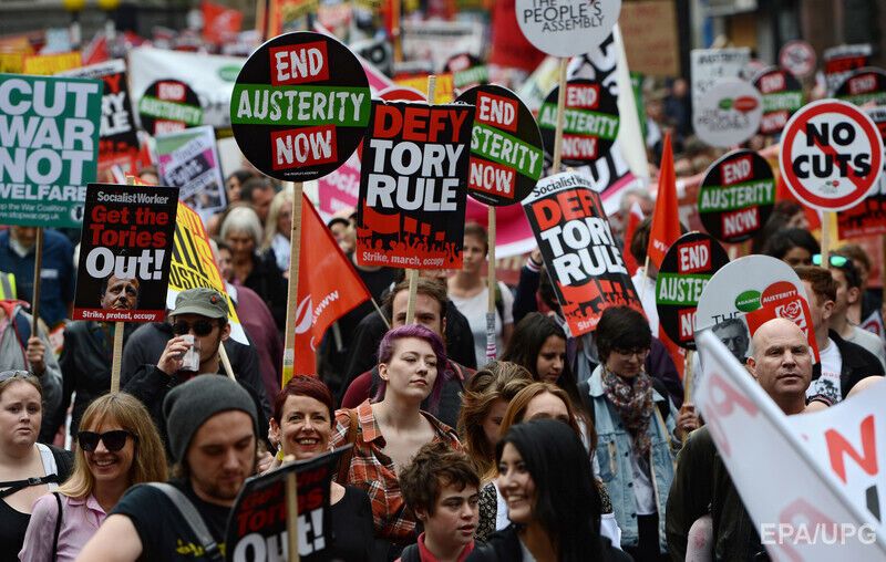 Тысячи демонстрантов вышли в субботу, 20 июня, на улицы британской столицы, чтобы высказать протест против мер жесткой экономии, сообщает Euronews. Протестующие прошли от финансового района Лондона к площади Парламента в Вестминстере, после чего собрались у здания Банка Англии. Британцы разочарованы мерами, направленными на решение дефицита госбюджета, который вырос после того, как страна спасла проблемные банки во время финансового кризиса 2008 года. Протестующие, в частности, заявили, что за время правления правительства консерваторов доходы богатых людей выросли, тогда как бедные стали еще беднее.