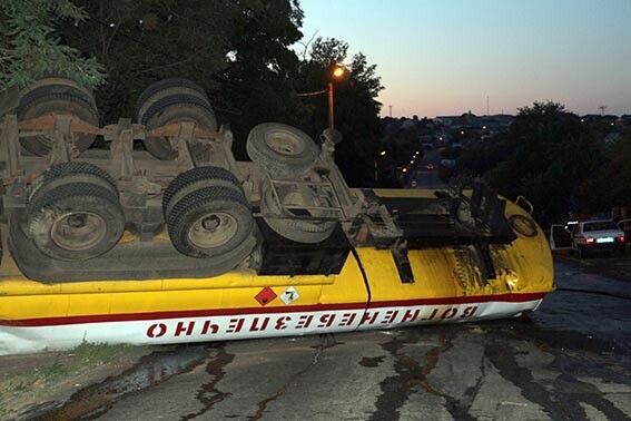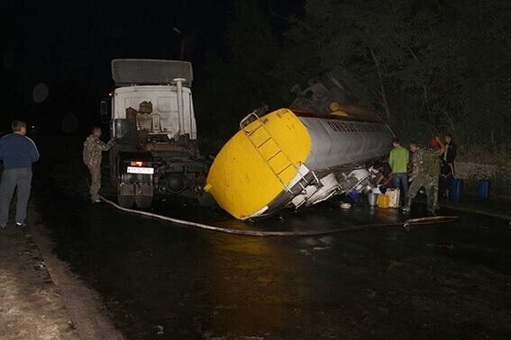 В Винницкой области перевернулась цистерна с дизельным топливом под управлением пьяного водителя. Фоторепортаж