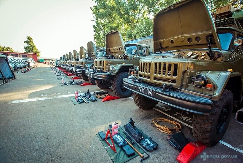 В воинской части №3078 Национальной гвардии Украины (НГУ) в субботу, 25 июля, начался ежегодный технический осмотр автомобильной техники, сообщает пресс-служба НГУ. По данным пресс-центра, накануне военнослужащие проводили обслуживание техники, ремонт и покраску, поэтому все авто выглядят почти как новые. Во время инспектирования внимание уделяется не только внешнему виду, комплектности и исправности автомобилей, но также знанию и выполнению водителями своих обязанностей, наличию соответствующих документов, порядку и качеству проведения сезонного техобслуживания.
