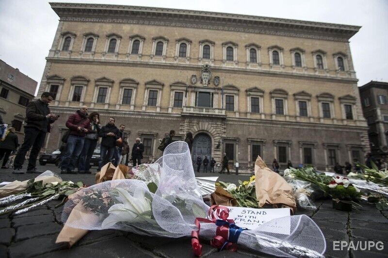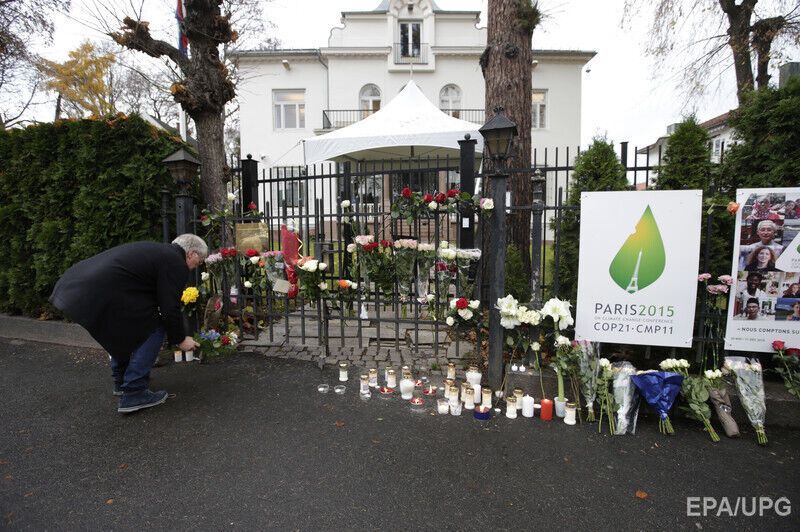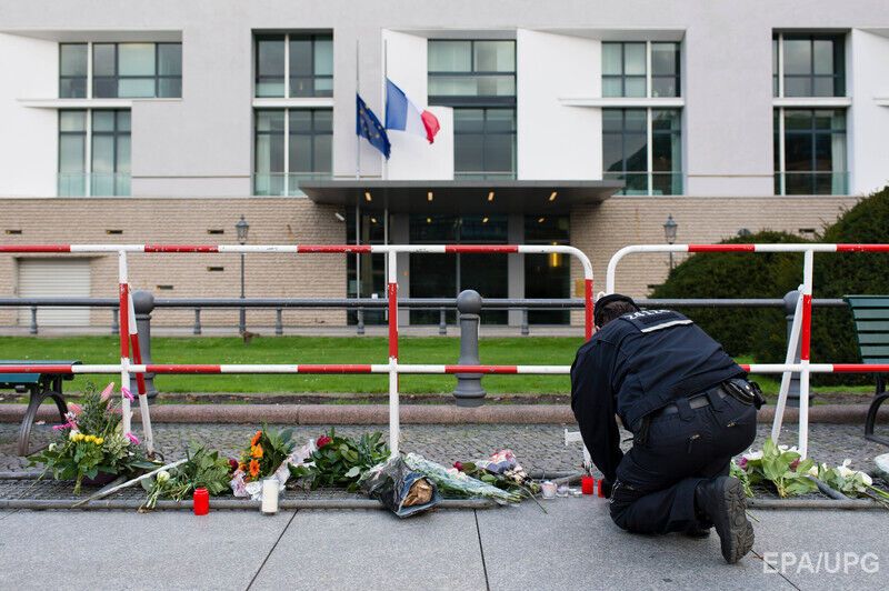 После трагических событий в Париже вечером 13 ноября, когда в результате серии террористических атак погибло 128 человек, люди по всему миру несут цветы к французским посольствам и консульствам в своих городах. В Киеве еще в ночь терактов горожане пришли к посольству и почтили память жертв боевиков. Утром 14 ноября президент Украины Петр Порошенко также возложил цветы у французского посольства. Французский президент Франсуа Олланд обвинил в совершении терактов боевиков "Исламского государства" и назвал их действия "актом войны" в отношении Франции.