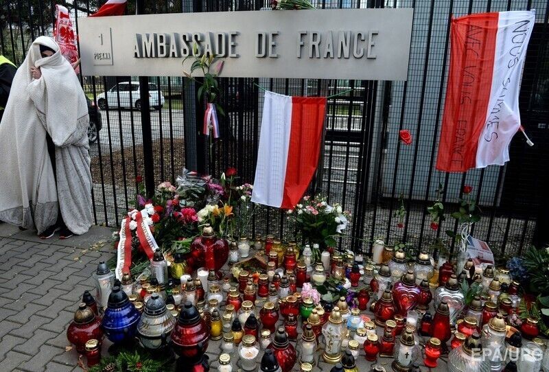 Во всем мире люди несут цветы к французским представительствам. Фоторепортаж