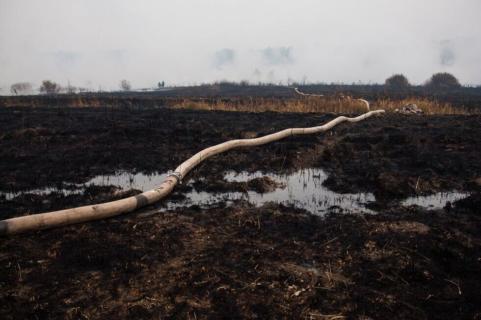 Вокруг Киева продолжают тушить тлеющие торфяники. Фоторепортаж