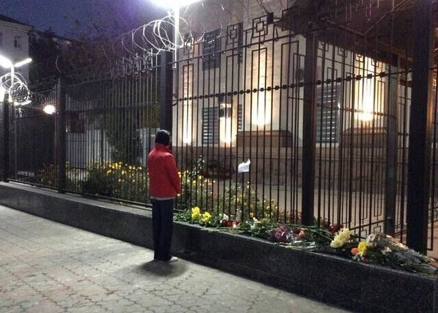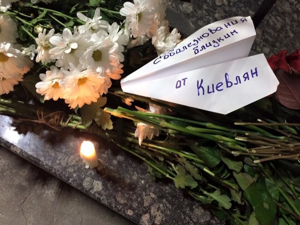 К посольству Российской Федерации в Киеве украинцы массово приносят цветы в память о погибших в авиакатастрофе над Египтом. В министерстве иностранных дел Украины подтвердили, что среди жертв крушения пассажирского самолета было четверо украинцев. Российский Airbus A321 разбился утром 31 октября. На борту самолета находились 224 человека: 217 пассажиров и семь членов экипажа.