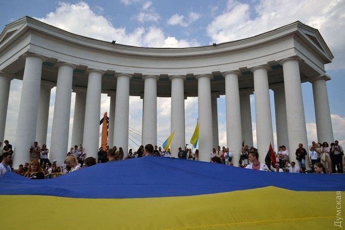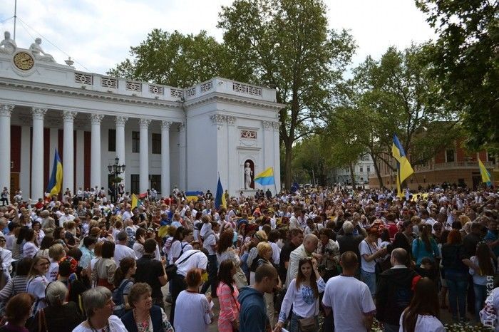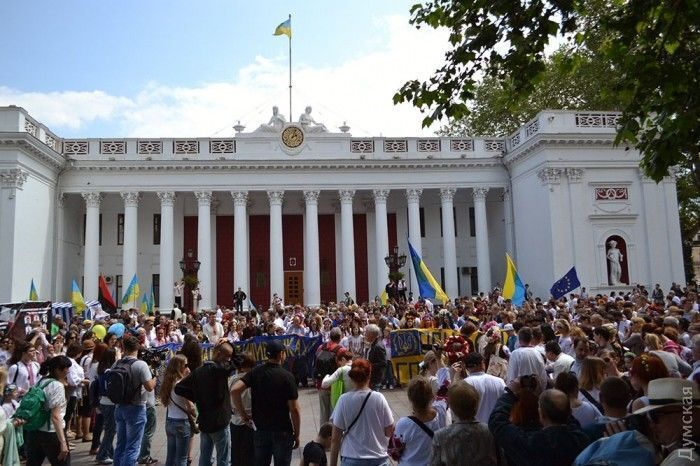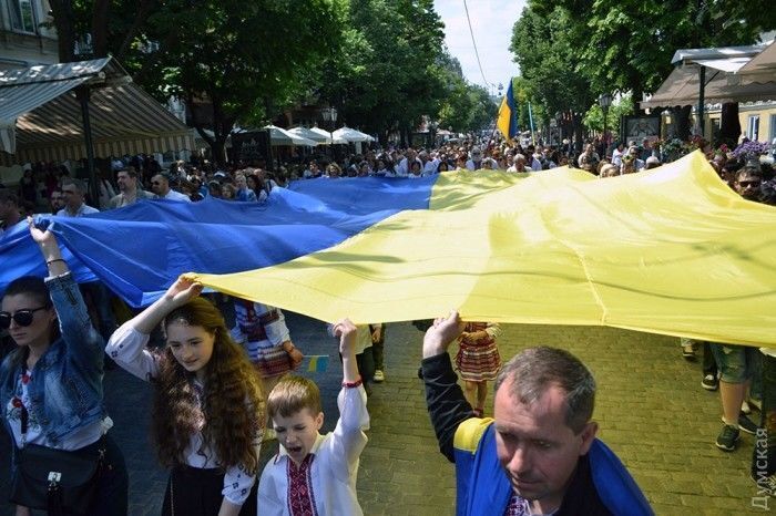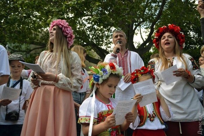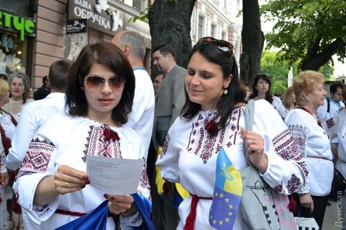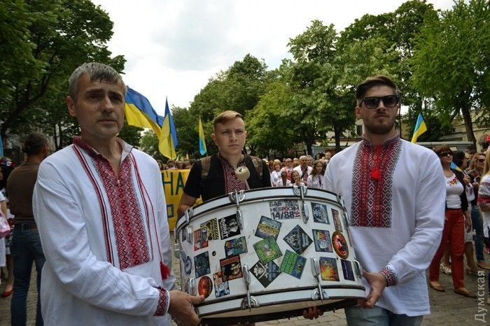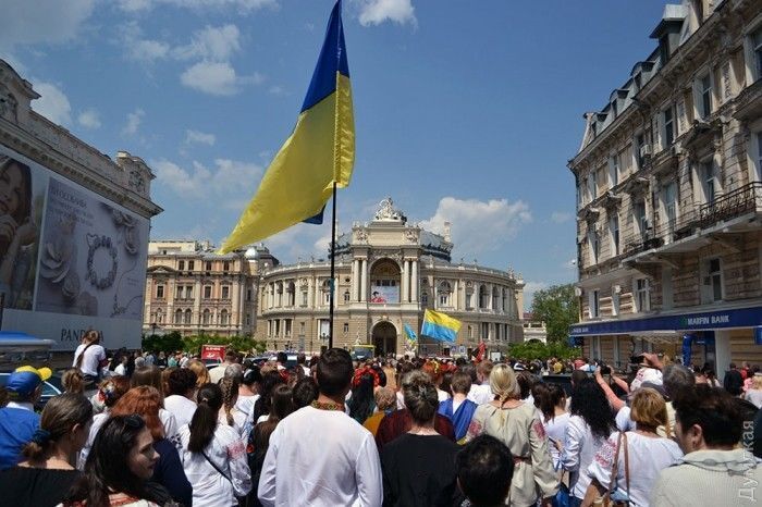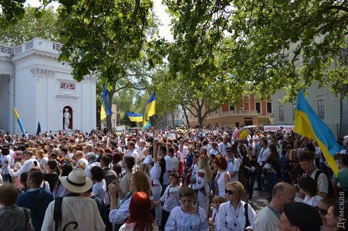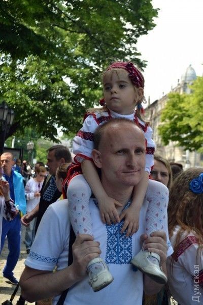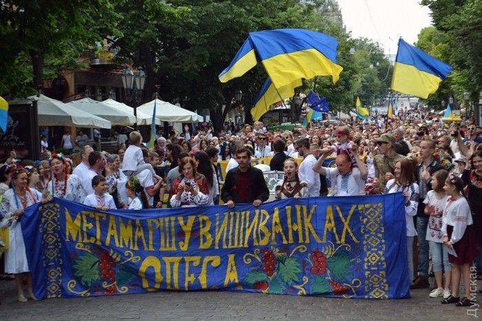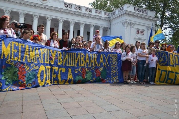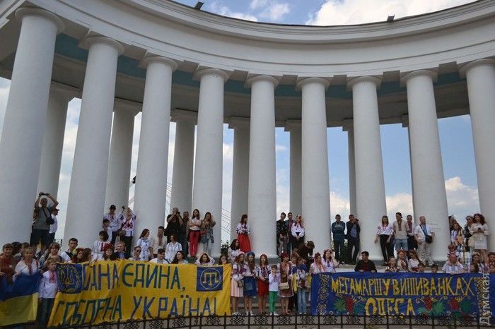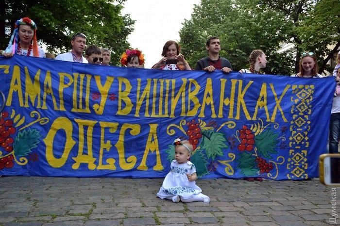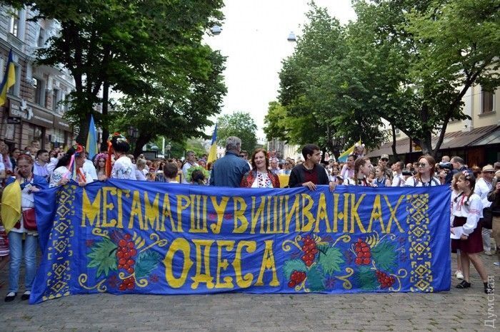 В субботу, 21 мая, в Одессе прошел восьмой мегамарш в вышиванках. По центральным улицам города прошли более тысячи людей в национальной одежде, передает "Думская". Колонна участников сформировалась возле "Пассажа", после чего двинулась по Дерибасовской улице мимо Оперного театра на Думскую площадь. Возле одесской мэрии участники марша спели песню "Океана Ельзи", а затем двинулись по Приморскому бульвару к Воронцовской колоннаде, где спели гимн Украины.