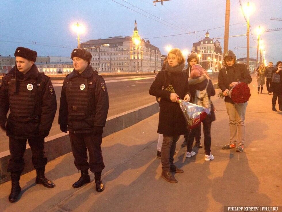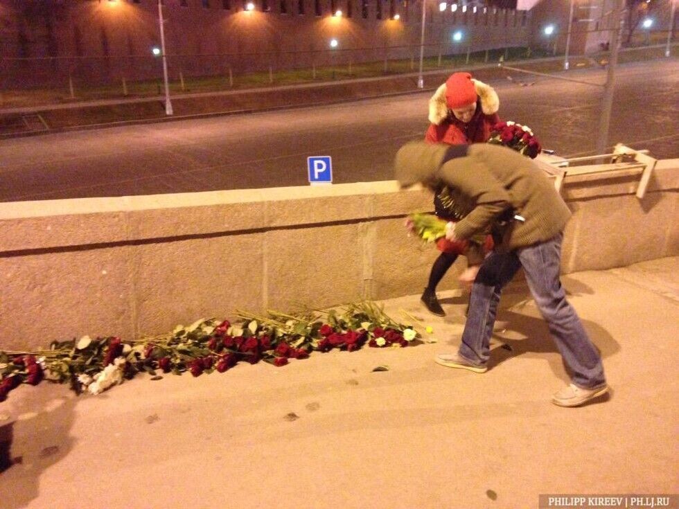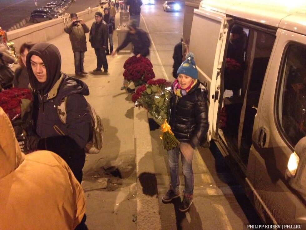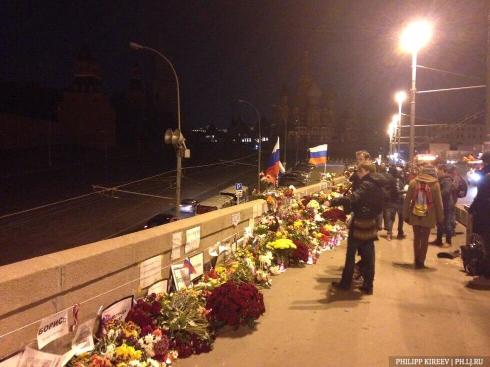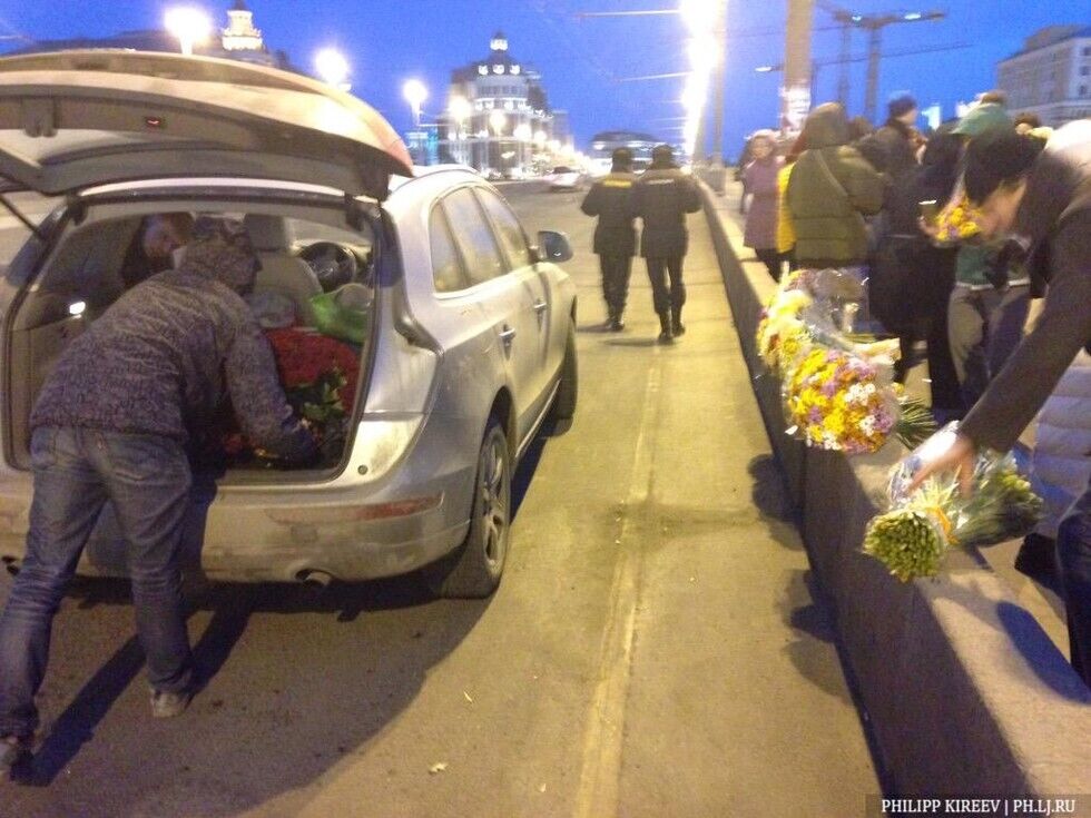 В субботу, 28 марта, москвичи восстановили импровизированный мемориал на месте убийства российского оппозиционного политика Бориса Немцова на Большом Москворецком мосту. За день жители города принесли на мост охапки цветов, свечи и плакаты с надписью "Борись". Прошлой ночью люди без униформы коммунальных служб собрали все цветы и портреты убитого в мусорные пакеты и вывезли в неизвестном направлении. На место гибели политика цветы начали нести сразу, как только стало известно о вандализме.