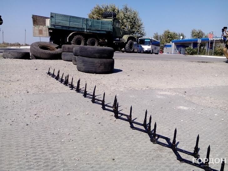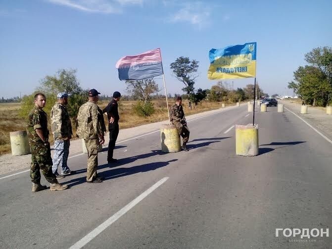 Но в эти дни, помимо очередного провального лета, у местных появился лишний повод для разговоров. Это расставленные неподалеку от рынка шины и "ежи" импровизированного блокпоста активистов блокады Крыма. Около них бойцы "Правого сектора" проверяют проходящий мимо легковой автотранспорт.
