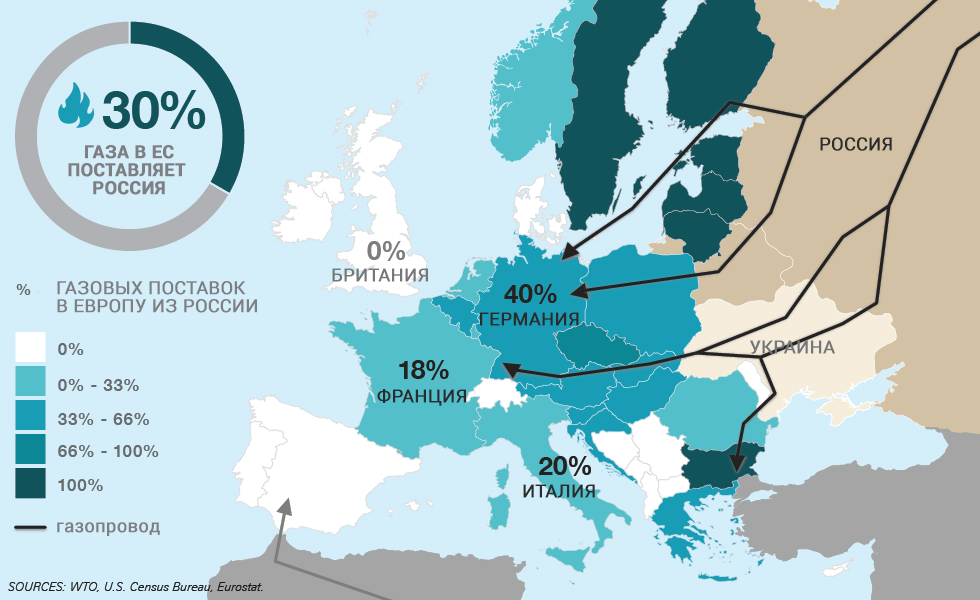CNN: ЕС слишком зависит от российского газа, чтобы вводить жесткие санкции. Инфографика