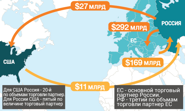 ЕС – третий по объемам торговли партнер России, тогда как США – 20-й.