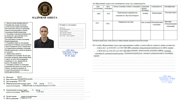 Решение команды планирования ГУР МОУ отдать вербовку на аутсорсинг Шаману вскоре принесло свои плоды. К концу мая фиктивная ЧВК получила десятки новых заявок, причем все соискатели ссылались на рекомендацию Шамана. Формы, которые отправляли соискателям, были составлены так, чтобы быть похожими на те, что ранее использовались настоящей ЧВК "МАР" – на каждой была печать этой ЧВК с фамилией и инициалами "директора по кадрам Алексеева" – той же фамилией, что использовалась на сайте поиска работы. Эти формы, которые в итоге заполнили более 200 соискателей, содержали полные личные данные, в том числе текущий адрес, номера телефонов и адреса электронной почты, рост, вес и размер обуви, образование и боевой опыт. Команда Bellingcat ознакомилась со всеми этими формами.