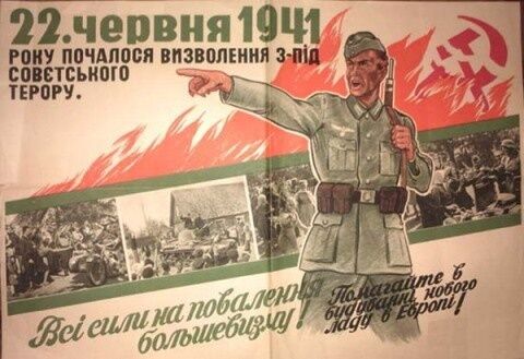 25 сентября на всех улицах, чуть ли не на каждом шагу расклеили портреты Гитлера. Он изображен в таких же тонах, как И.В.Сталин на портретах наших художников. Стоит с гордым видом, подбоченясь. Изображен в защитном френче, очевидно, в форме национал-социалиста, потому что на руке красная повязка с черной свастикой на белом фоне. А под портретом надпись: "Гітлер – визволитель". И возле всех портретов по два красных флажка, тоже со свастикой посередине. И еще появились в тот же день воззвания к украинскому народу некоего Степана Бандеры. В них снова оплакивалась "доля" и превозносилась национальная борьба украинского народа. Потом шел призыв к объединению населения Киева в партию "ОУН" – "Объединение украинских националистов" во главе с этим самым Бандерой. Затем объявлялось, что отныне у нас будет "Самостійна, соборна українська держава". И заканчивалось воззвание словами: "Твої вороги – Москва, Польща, Жидова. Знищуй їх!" Это было на одном или на нескольких углах по улице Короленко. А на других углах были другие воззвания, анонимные, в которых говорилось, что будет "национальная украинская республика", а не "держава". А накануне висело объявление о приеме в "українську народну міліцію". На другой день – 23 – в "Державну міліцію".