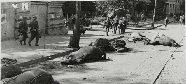 Страшное зрелище представляет сейчас наша, еще пять месяцев назад цветущая большая страна. Разрушена вся промышленность. Разрушена вся центральная часть города. Во все стороны от Киева по дорогам – кладбища машин, кладбища скота. Он шел по дорогам и погибал без пищи, без помощи. Коровы телились на дорогах и умирали.