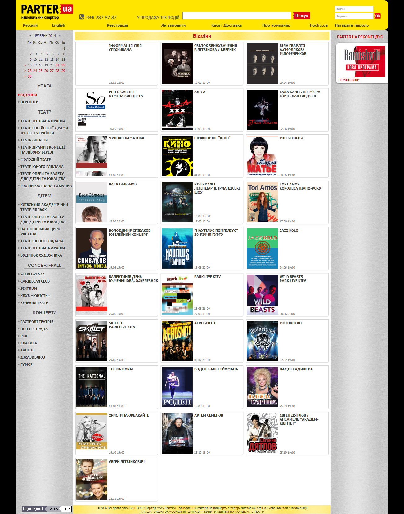 В целом на сайте компании "Партер" из восьми мероприятий, запланированных пока что на сентябрь, шесть – украинские проекты. Но в сентябре прошлого года концертов было раза в три больше в целом…