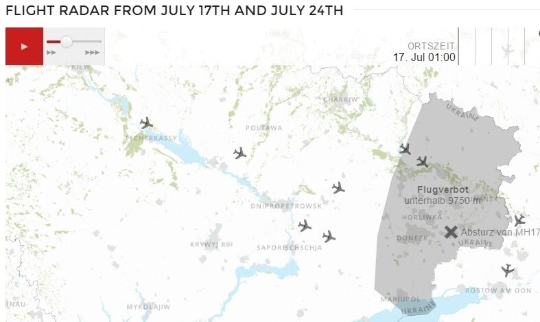 После крушения самолета с военными на борту Украина закрыла полеты в воздушном пространстве над Донбассом на высоте до 10 км. А выше продолжали летать гражданские самолеты международных авиалиний.